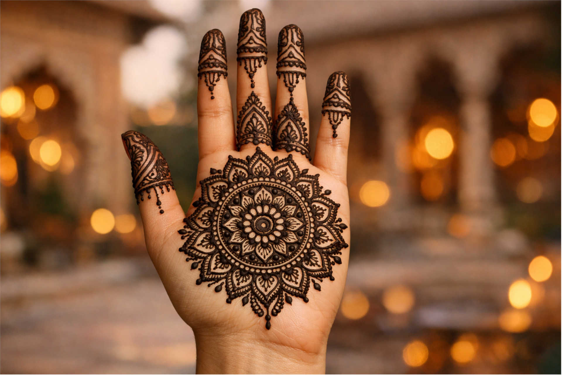 Mandala mehndi circle designs for the front hand are widely used for festive and traditional occasions, offering a balanced and symmetrical look. This style focuses on a central circular pattern with detailed extensions toward the fingers, making it suitable for various events.